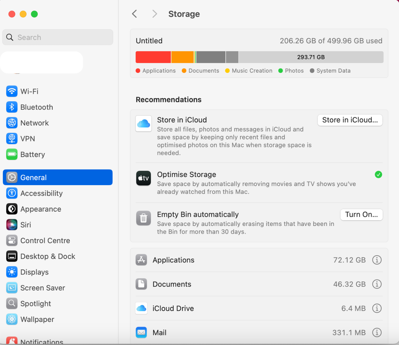 This is one of the biggest reasons MacBooks slow down—especially if you see “Storage Almost Full.”